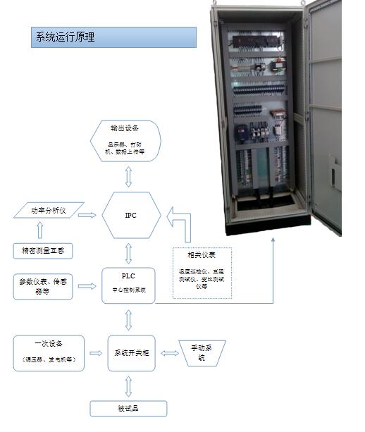 l 本系統(tǒng)秉承自動(dòng)化理念,實(shí)現(xiàn)試驗(yàn)的高度自動(dòng)測(cè)控。利用工控機(jī)、PLC等設(shè)備最大化的提高控制、測(cè)量精度,控制室真正實(shí)現(xiàn)無(wú)強(qiáng)電控制,提高試驗(yàn)人員安全。利用功率分析儀與計(jì)算機(jī)數(shù)據(jù)交互提高試驗(yàn)數(shù)據(jù)讀取精度和計(jì)算精度。全自動(dòng)化的操作最大程度提升工作效率,節(jié)省人力成本。